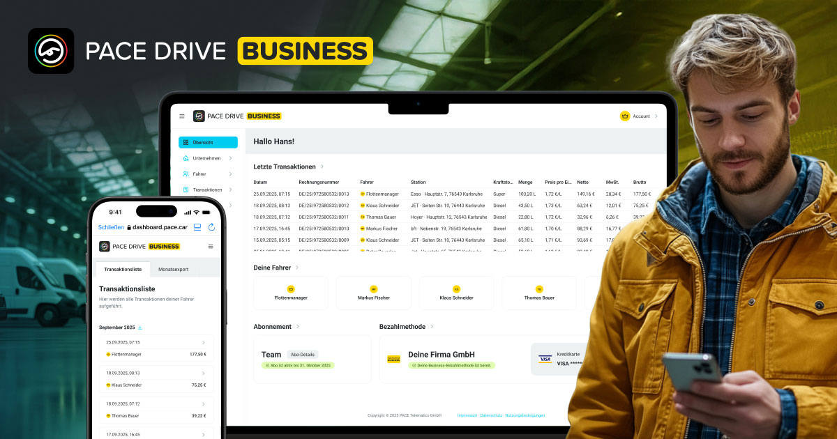 Das neue Dashboard dient als Herzstück für die Verwaltung und bietet Unternehmen eine zielgerichtete und intuitive Steuerung ihres gesamten Fuhrparks. Während die Fahrer ihre Tankungen weiterhin einfach und sicher per PACE Drive App autorisieren, erhalten Flottenmanager nun volle Transparenz und Kontrolle über alle Vorgänge in Echtzeit.